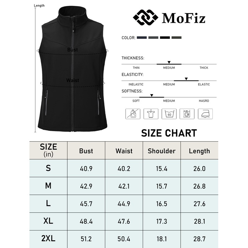 MoFiz Women's Lightweight Vest Softshell Sleeveless Jacket Windproof Stand Collar with Zipper Pockets Running Hiking Golf Black L