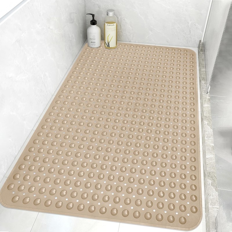 • SUPER NON SLIP: Our shower mat has a delicate anti-slip texture on the surface and 482 suction cups on the back, which can be firmly adsorbed on the floor. Note: To prevent slipping, do not use shower oils. Shower mats can only be adsorbed on smooth and clean surfaces