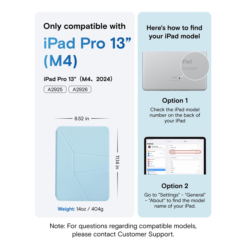 - Compatibility - Exclusively compatible with the iPad Pro 13" (M4, 2024) C Models A2925 & A2926. For questions about compatible models, please feel free to contact us.