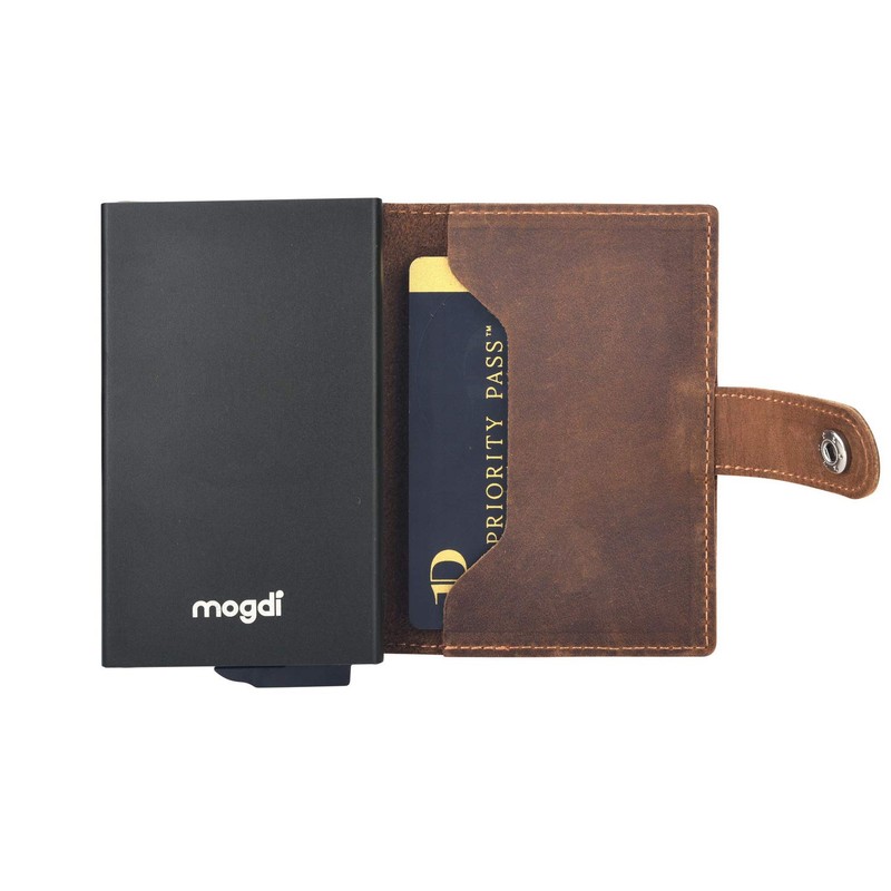 Mogdi Nano Mini Duo Premium Men's Wallet RFID Protection Card Case Business Wallet Finest A++ Genuine Leather Black