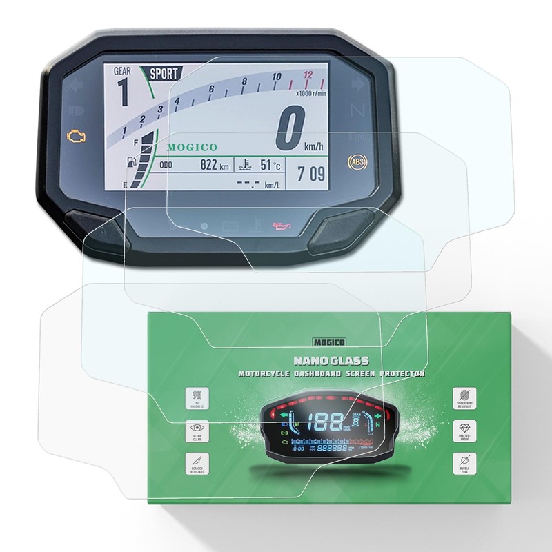Mogico Motorcycle Accessories Nano Glass Dashboard Screen Protector Kit for Kawasaki Ninja 500 SE e-1 7 Hybrid ABS 2024+ / Ninja 650 1000 SX 2020+ / ZX-25R 2023-2025 (2 x Ultra Clear & 2 x Anti Glare)