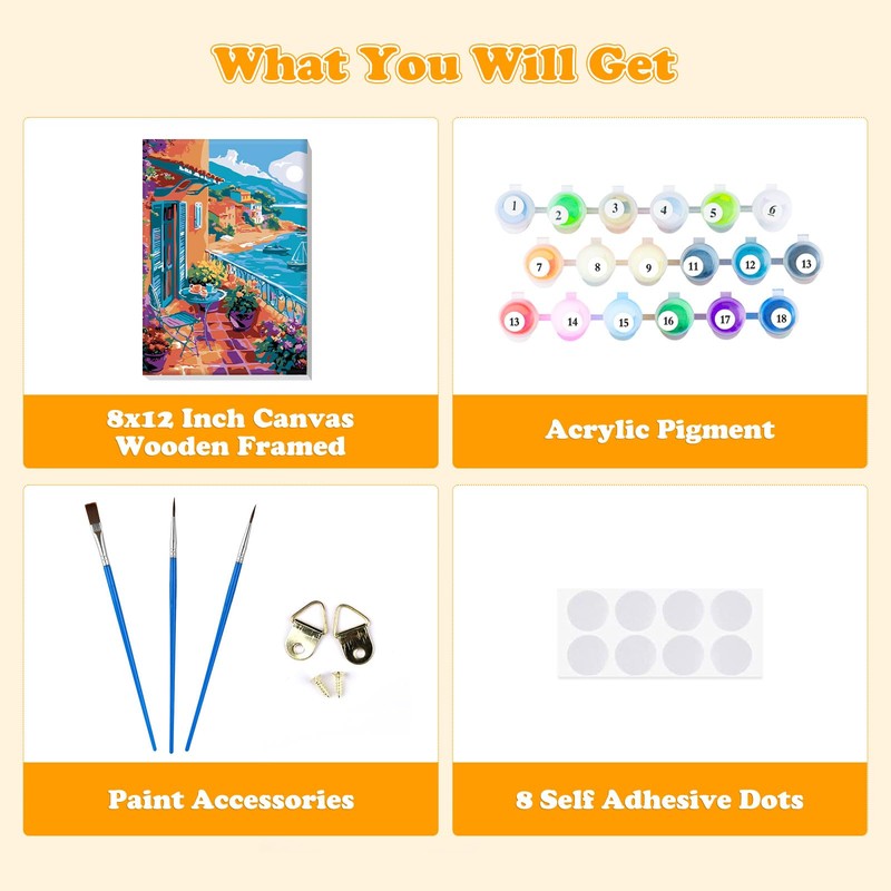 - 🌼【Paint by Number Kits】8 x 12 inch canvas size with frame, simple and cute pattern, clearly pre-printed textured, no painting skills required. Just need to follow the numbers on the canvas and then they can create a great painting by themselves