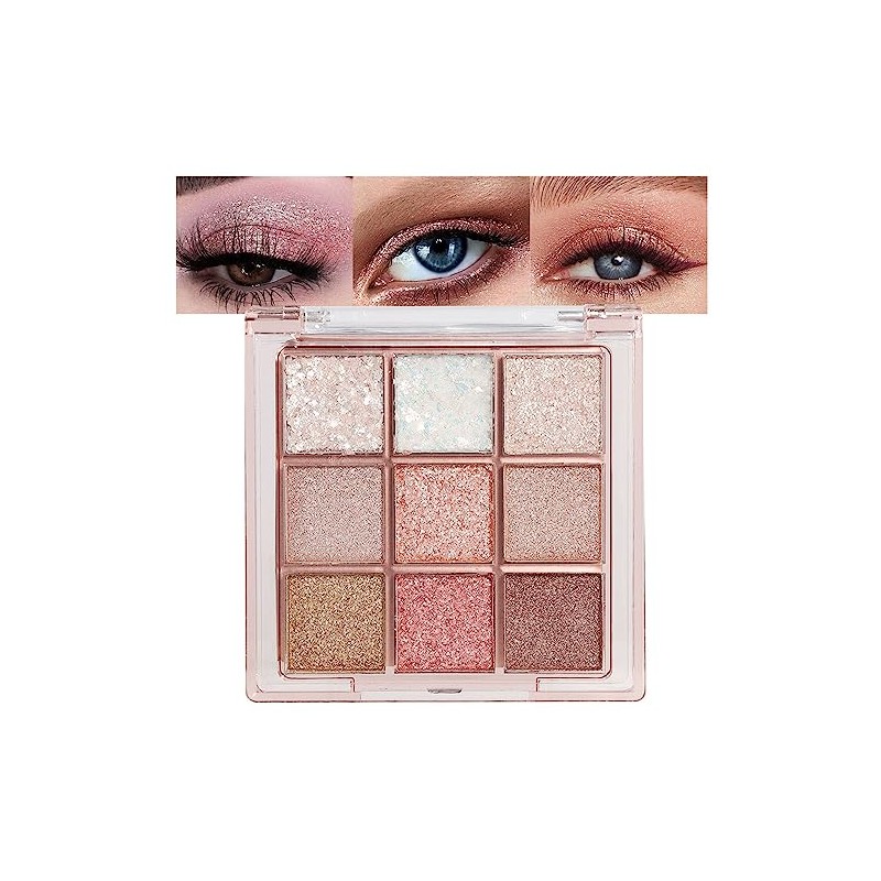 Moguri 9Colors Glitter Eyeshadow Palette,Pink White Gold Glitter Shimmer Sparkly Eye Shadow Palette Makeup,Warm Pastel Eyeshadows Palette Long Lasting Waterproof Naturing-Looking