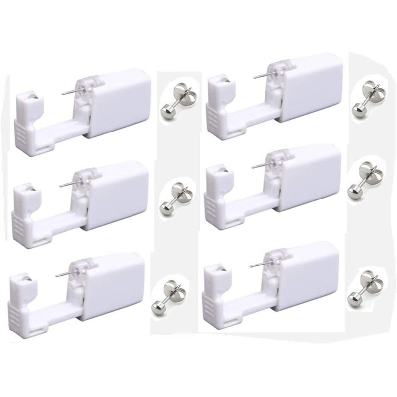 Moguxb Disposable Ear Piercing Gun with Stud Earrings, Pack of 6, Self-Piercing Tool, Pain-Free, Ear Piercing Gun, Ear Piercing Tool, Ear Nose Self-Piercing for Girls, Women, Men, Plastic