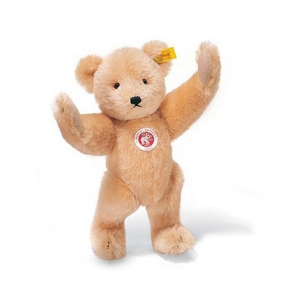 A favorite since his introduction in 1928. This 11 inch, five way jointed Petsy has soft light blonde mohair fur, big-baby ears, hand ecltbroidered features, and felt paw pads.