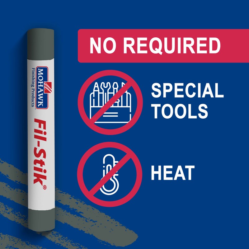 - Mohawk Fil-Stik crayon and wood filler is available in a wide variety of colors to repair and help hide scars, scratches and abrasions on furniture, picture frames, leather, plastics and paneling