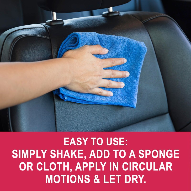 - Simply shake the bottle well, add the leather treatment to a sponge or lint-free cloth, then apply in circular motions and let dry