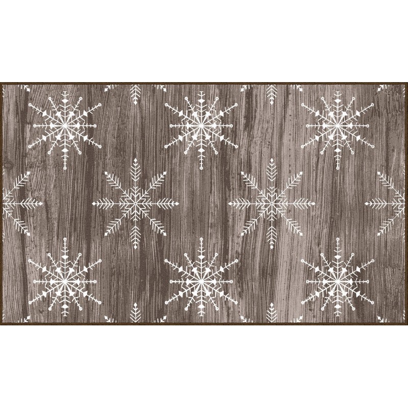 Dress up your living room or dining room with the sophisticated feel of this rectangular polyester rug. Featuring light snowflakes on a rustic barn-wood pattern, this cut pile rug is delightfully eye-catching. Perfect for the host with a refined sense of style, this seasonal rug features precision Dye injected construction.