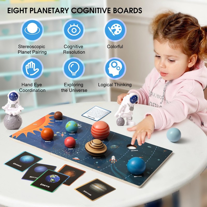 - LEARNING ABILITYThis planet matching toy has rich colors and a sturdy sphere, which helps cultivate children's imagination, concentration, hands-on ability, cosmology, and planetary cognition abilities, increasing their interest in exploring the universe and enabling them to fully grasp the mysteries of the universe.