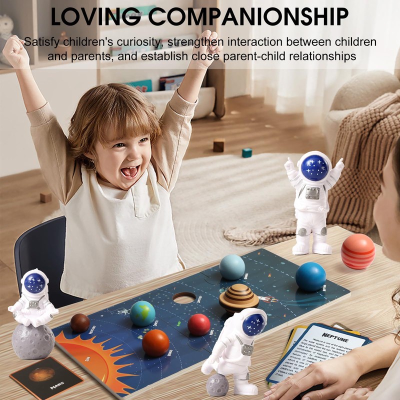 - STEREOSCOPIC PLANETThe design of large particle planets is very suitable for grasping and easy to play. Cards provide children with realistic images that allow them to gain a detailed understanding of each planet. The planetary cognitive board can not only promote parent-child communication, but also help teachers expand more knowledge of the universe.