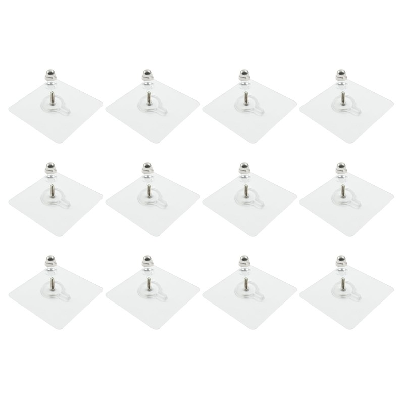 Moicstiy 12 Pcs Adhesive Hooks Screw Hanging Wall Hooks Transparent Waterproof Reusable Seamless Sticky Hooks for Kitchens, Bathroom, Office(Screw Length: 0.5inch)