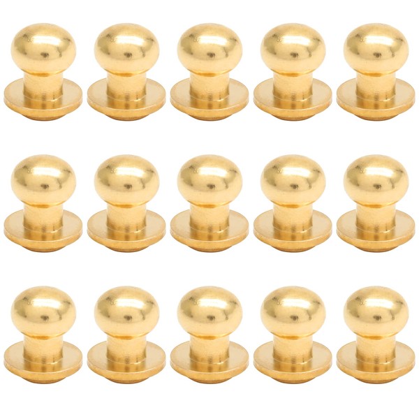 Moicstiy 15Set 10mm Round Head Button Studs Solid Brass Button Stud Screw Leather Button Rivets for Bag, Belt, Craft, DIY Decoration