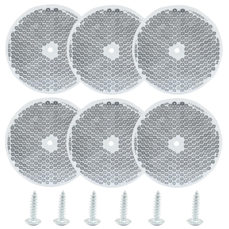 Moicstiy 6 Pack White Round Reflector, Front Reflector with Mounting Screw, Safety Reflectors for Driveway, Trailer, Posts