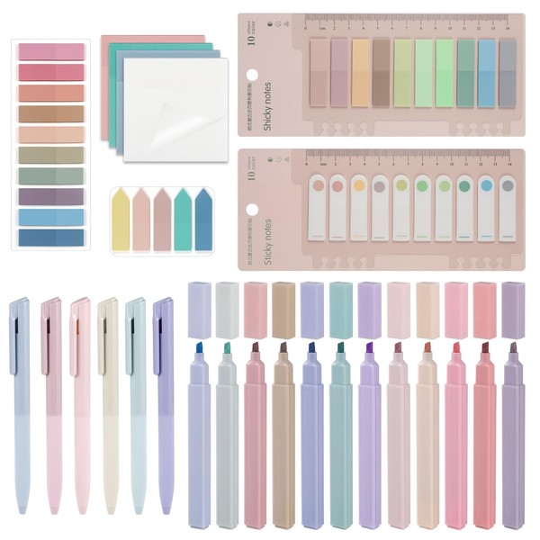 moinkerin Pack of 900 Sticky Notes with 12 Pastel Highlighters and 6 Aesthetic Gel Pens for Bookmarks, Study, Office, School Planner Memo