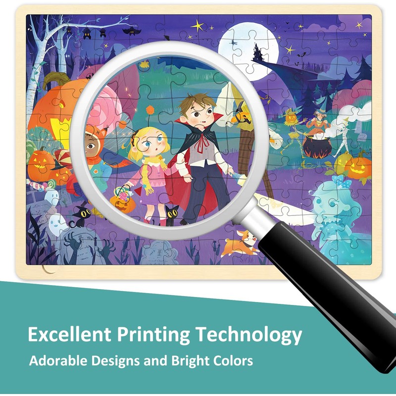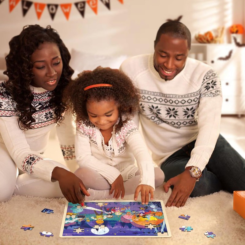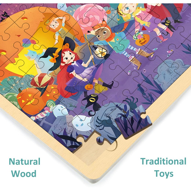 MoinKidz Wooden Puzzles for Kids Ages 3-5, Whimsical Halloween Night 100 Piece, Halloween Puzzles for Kids Ages 4-8 with Storage Tray
