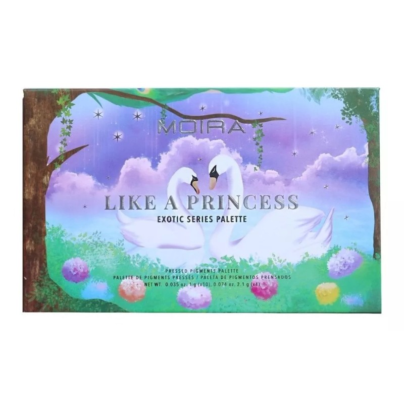 LIKE A PRINCESS: La belleza de los pasteles perfectos. Inspirada en los cuentos mágicos y de hadas de los cisnes, esta paleta presenta una variedad de pasteles y destellos para sacar lo mejor de ti. No importa con qué tono decidas inspirarte, puedes estar seguro de ser la princesa de tu cuento de hadas. ¡Una hermosa colección exótica de fórmulas mixtas que brillan, mezclan y tienen pigmentos súper ricos!