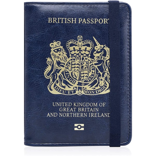 MOIRENTO UK Passport Cover Holders Protector PU Leather Navy Blue British Wallet Brexit Navy Blue-Band