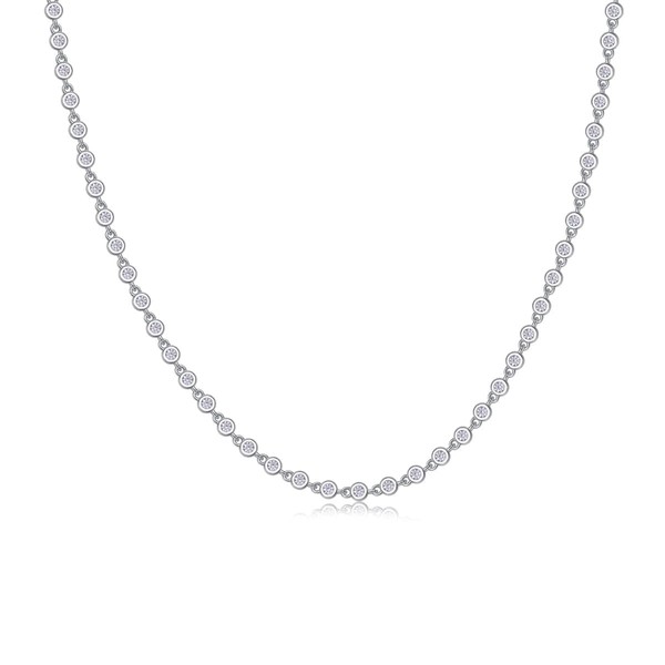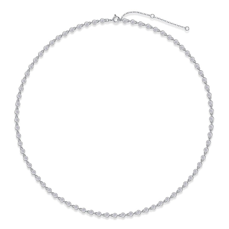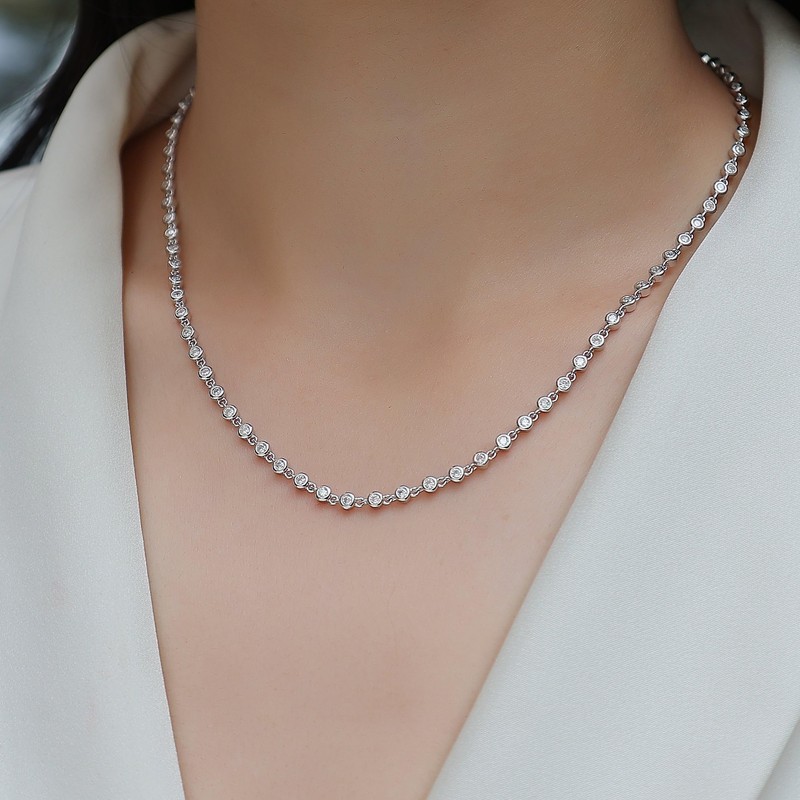 - Elegant Design: The delicate chain of our Platinum Plated Moissanite pendant necklace features interconnected circles of light, with round cut stones in bezel setting. This Moissanite pendant necklace is made for women who appreciate subtle yet captivating beauty and makes a perfect anniversary gift or couples gift for any day.