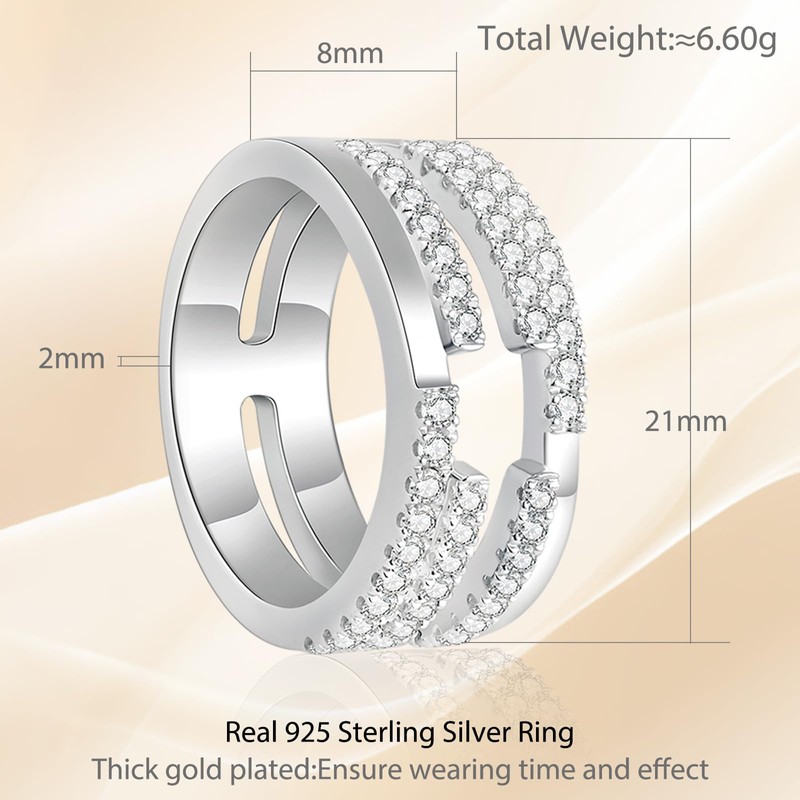 Moissanite Half Eternity Ring with 2 Row Diamond for Women,D Color VVS1 Lab Created Diamond S925 Sterling Silver Stackable Fancy Wedding Band with 18K White Gold Plated Gemstone Jewelry Gift(8)