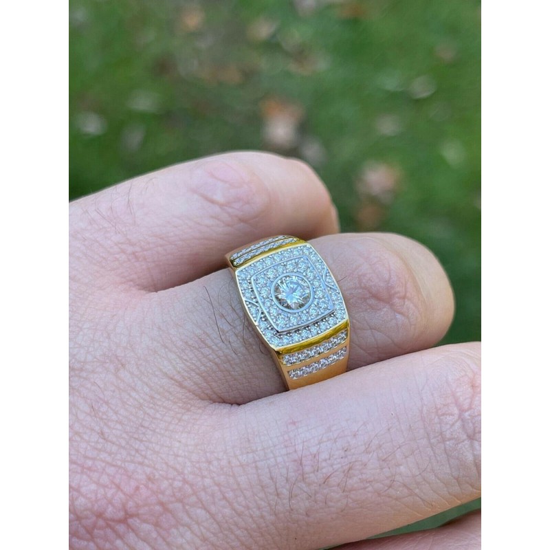 MOISSANITE Heavy Men’s Ring – 1.35ct VVS D Color – 5.5mm Center Stone – 14k Gold Vermeil Over 925 Sterling Silver – Passes Diamond Tester – GRA Certified Pinky Ring Bling (7)