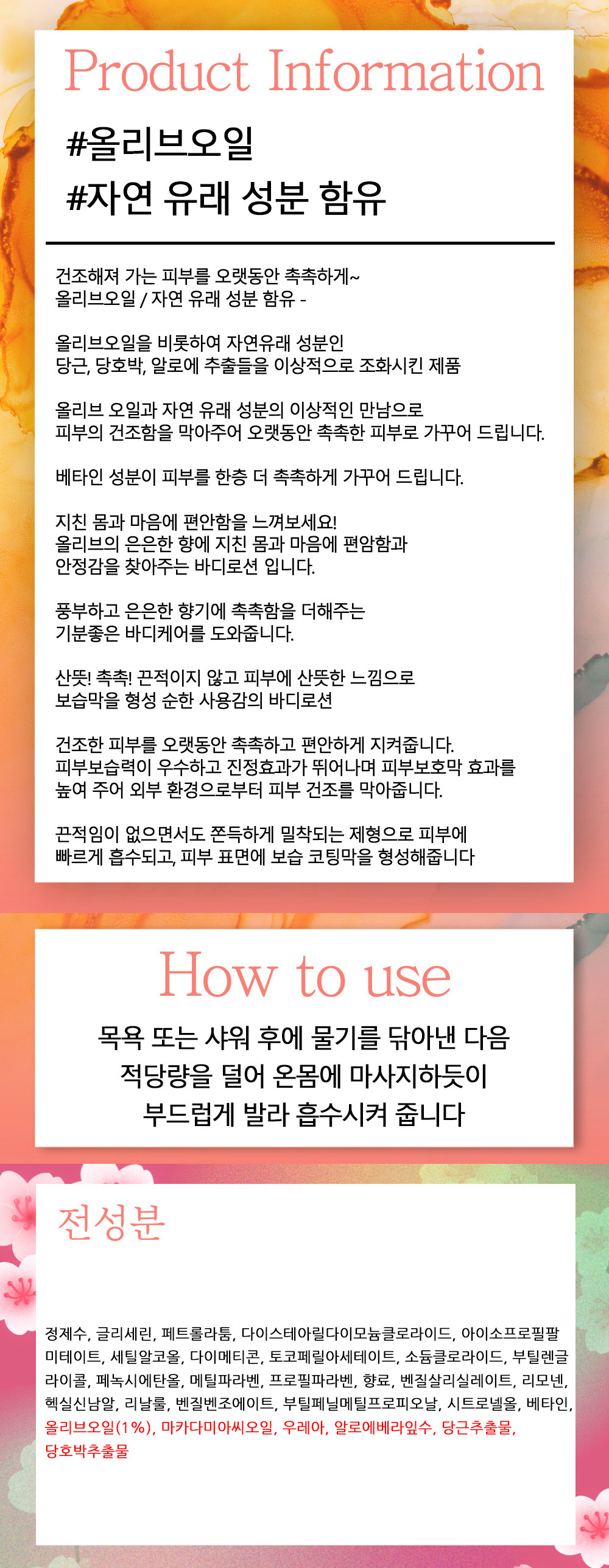 촉촉 순한사용감 은은한향 산뜻한느낌 바디로션 400ml