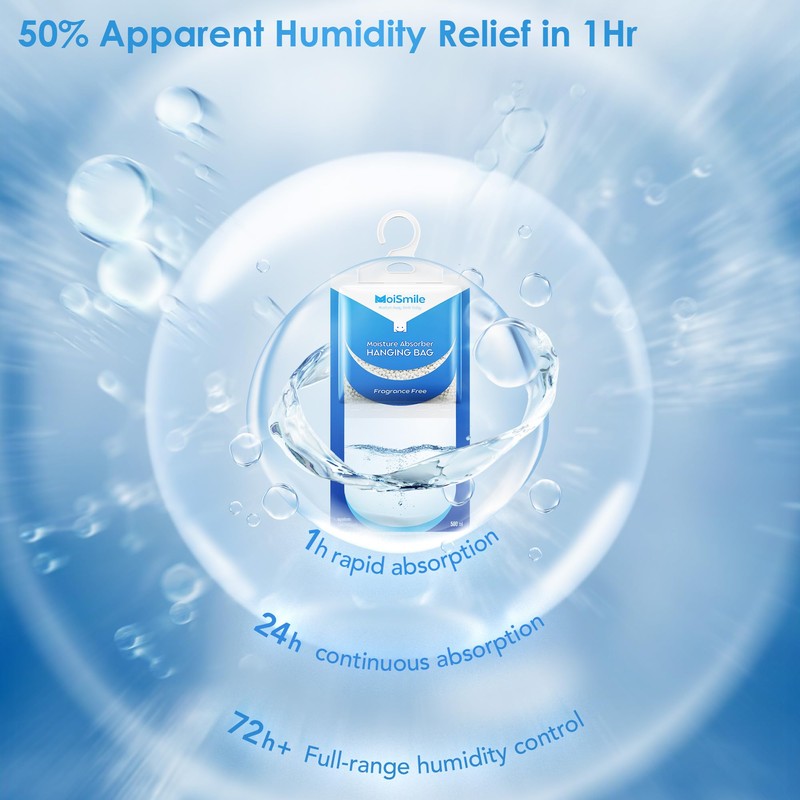 • Simple & Safe: The hanging moisture absorber bag does not require assembly, easy to used. Each one is individually packaged for easy access and long-term storage. Closet moisture absorbers comes with a hook that can be easily hung around for dehumidification, occupying only a small space. Moismile give you a dry and comfortable space