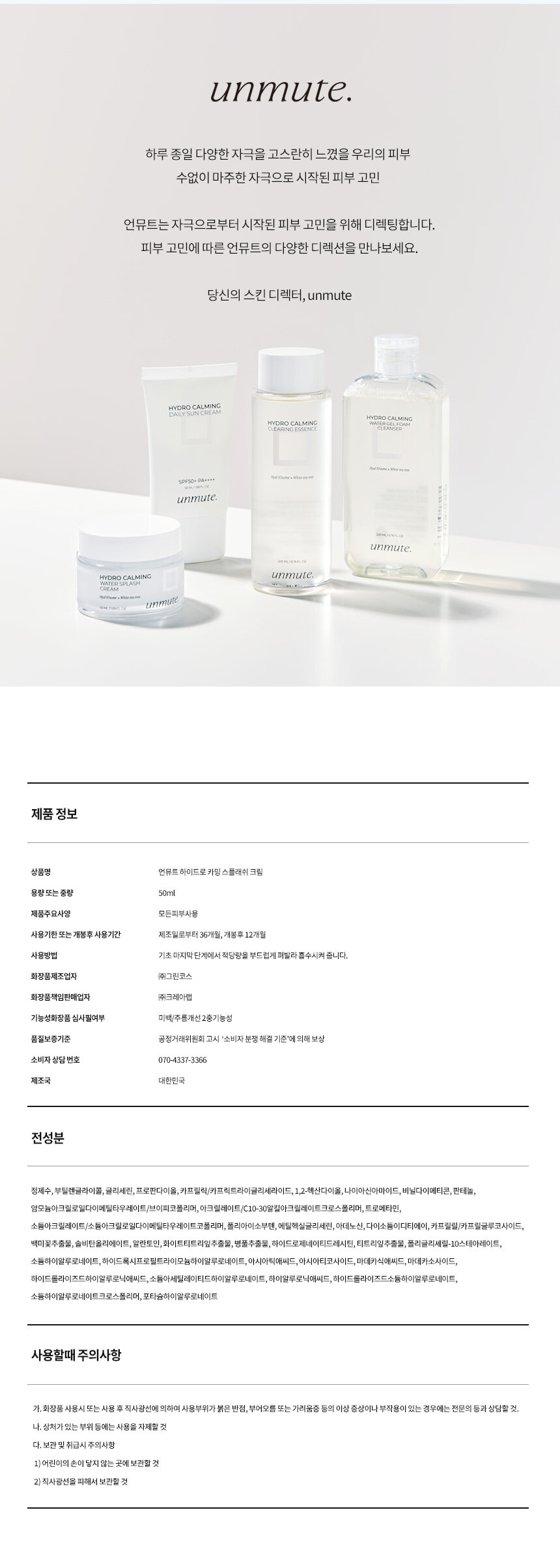 [수분장벽] 하이드로 카밍 스플래쉬 크림 50ml