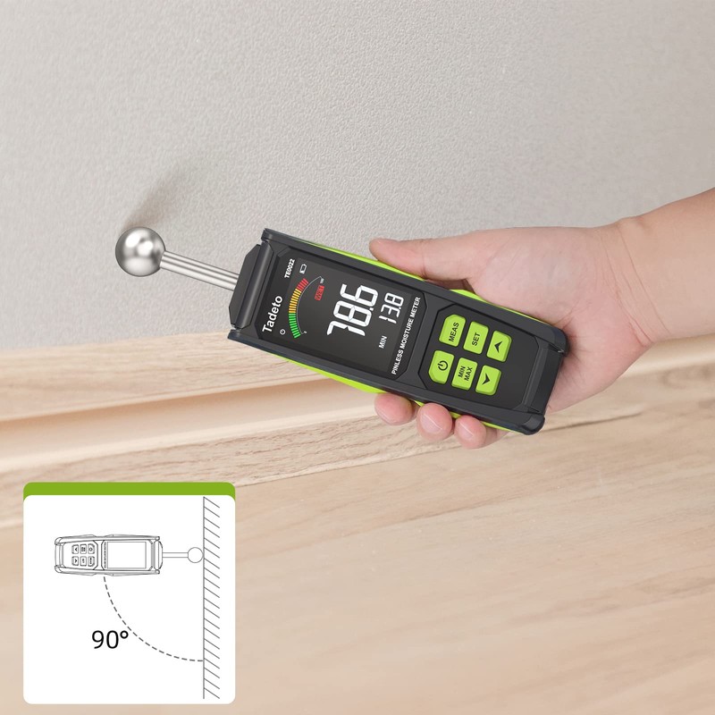• Wide range of applications: moisture meter for walls is suitable for testing the moisture content of wood, wall, tiles, cement mortar and other building materials (not suitable for metal measurements). Check and test suspicious water stains around home, basement, attic, camper. It is a good helper for repairing water leaks, carpentry and building construction. Tadeto offers 1 year quality support, please let us know if you need help.
