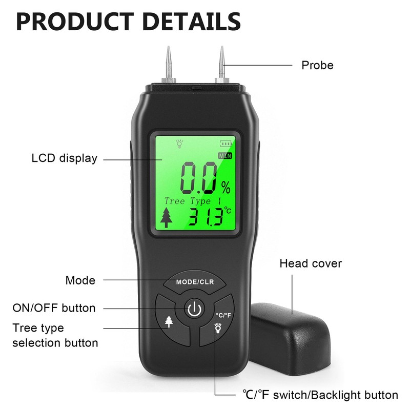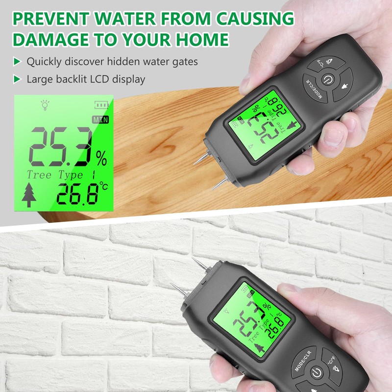 - Large LCD screen: moisture meter with a spacious display for clear and easy to read moisture displays, moisture meter improves ease of use.