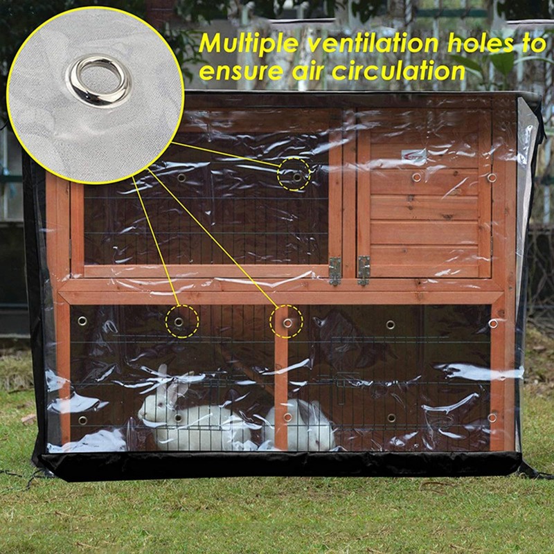 - Clear View Window: The front of the rabbit cage dust cover is designed with transparent plastic viewing windows so that you can check your rabbits or other pets conveniently. Besides, the plastic viewing windows can be rolled up for ventilation.