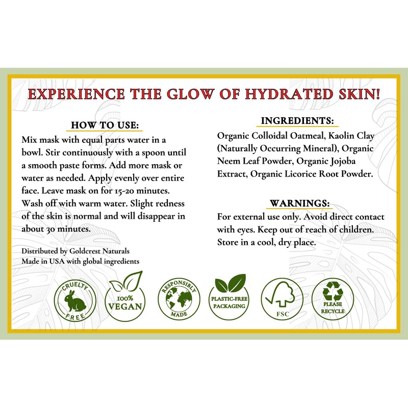 - Moisturizes and Purifies: Contains organic colloidal oatmeal, kaolin clay, organic neem leaf powder, organic jojoba extract, and organic licorice root powder to help moisturize and purify the skin, promoting a healthier-looking complexion.