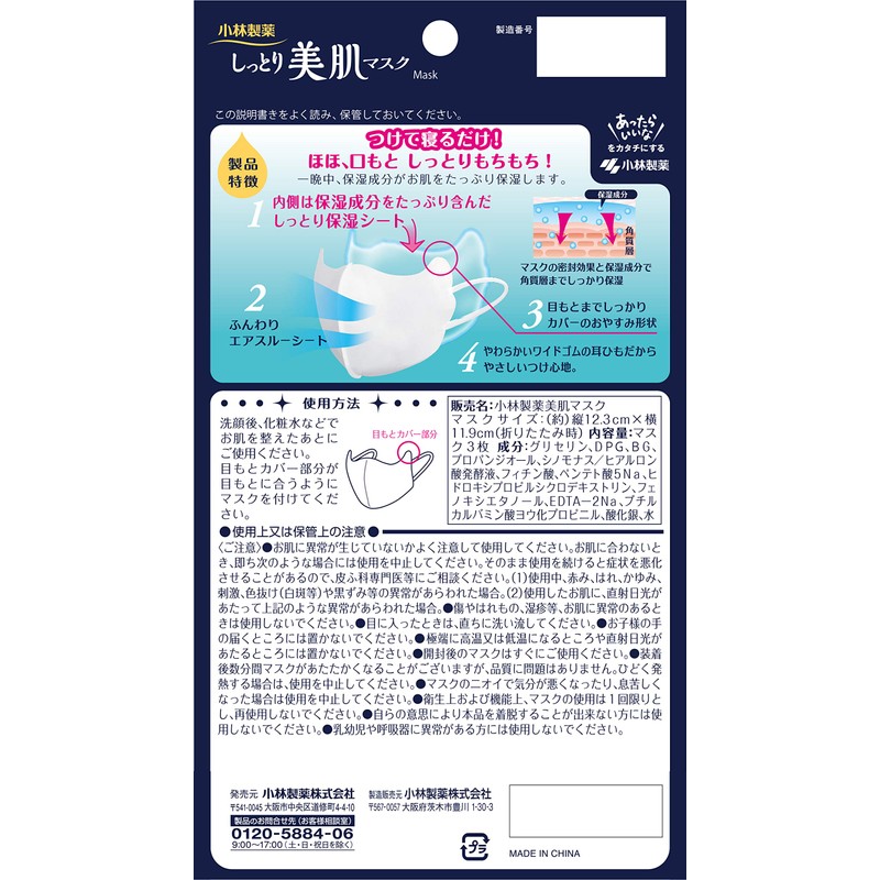 Moisturizing Mask, Moisturizing and Moisturizing Ingredients to Moisturize Your Skin Overnight, Normal Size M, 3 Pieces