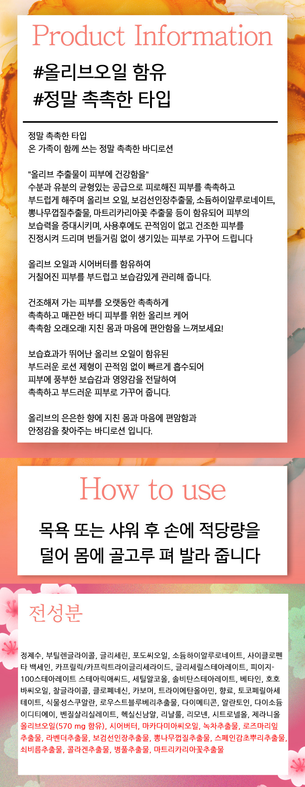 수분유분공급 올리브오일 촉촉한 바디로션 380ml 2개