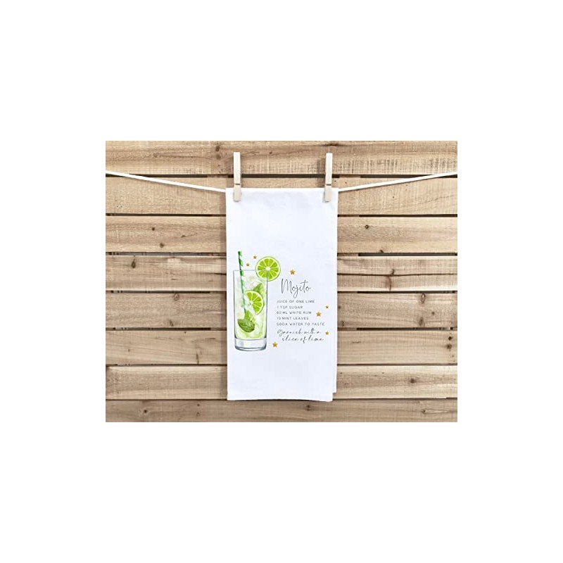 Mojito Recipe Kitchen Towel with Hanging Loop - 100% Cotton Flour Sack Hand Towels - Cocktail Bar Decor - Housewarming Hostess Birthday Christmas Thanksgiving Mother's Day Gift