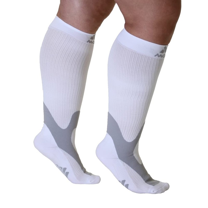 Mojo Compression Socks for Women and Men 20-30mmHg Wide Calf - Plus Size Medical Knee High Support Stockings for Edema, Swelling, Bariatric Surgery Recovery - White, 6X-Large - A601