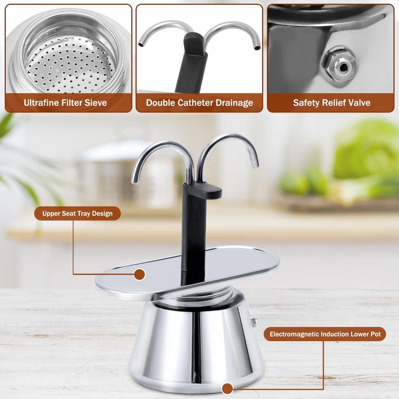 - MAKES DELICIOUS COFFEE: This 2 cup Coffee pot pours coffee quickly and elegantly, preserving the traditional coffee flavor while combining elegance and functionality, perfect for a quick double coffee or hosting guests