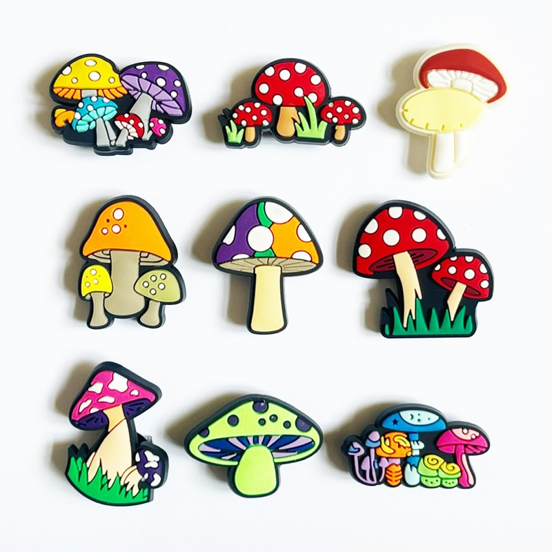- 1 .Shoe Charms. Each Set Includes 20PCS Different PVC Shoe Decoration Charms , make More and Better Collocations. Attention Please _ Not a toy ; Not intended for children under 3 years of age. mushroom charms charm shoe