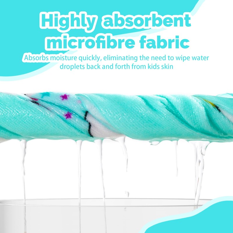 - Absorbent and quick-drying: This quick-drying towel is made of microfibre material and has received the certification according to Oeko-Tex Standard 100, making it safer and more breathable than conventional cotton towels. The high-density fluff has higher water absorption capacity and dries quickly. This keeps your child's skin dry and protected from the cold after bathing