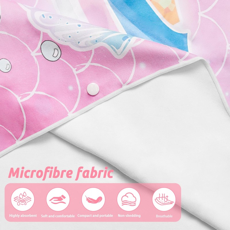 - Multifunctional Design: This beach towel adopts a stylish cartoon pattern design, and has buttons on the side, which makes it easy for children to put on and take off quickly. The hat is added to the design, which not only provides extra warmth when changing clothes, but also covers the head and prevents cold from wind.