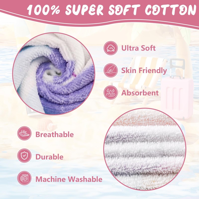 - 【100% PURE COTTON】High latitudes long-staple cotton, soft and comfortable, super absorbent. Our 100% cotton towels are perfect for bath time or the beach. With their soft and breathable fabric, they provide a gentle touch on the skin and offer high water absorption. These towels dry fast after bathing, swimming or showering.
