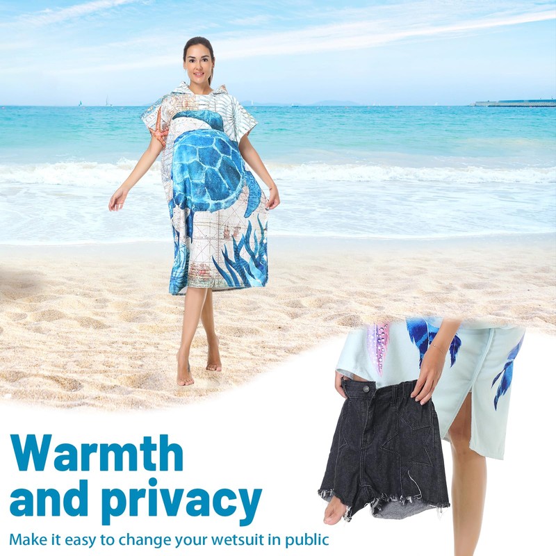 - 【Personal changing rooms】This surf poncho is spacious enough to act as your private changing room, saving you the time and hassle of searching for a changing room, providing you with privacy at the beach, and making changing easier and more comfortable. The poncho towel is ideal for changing after swimming, surfing, and showering