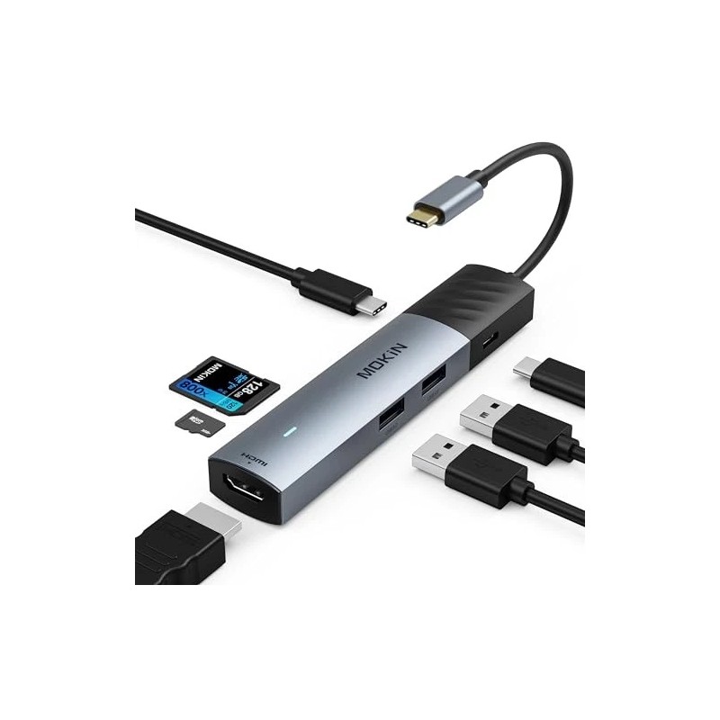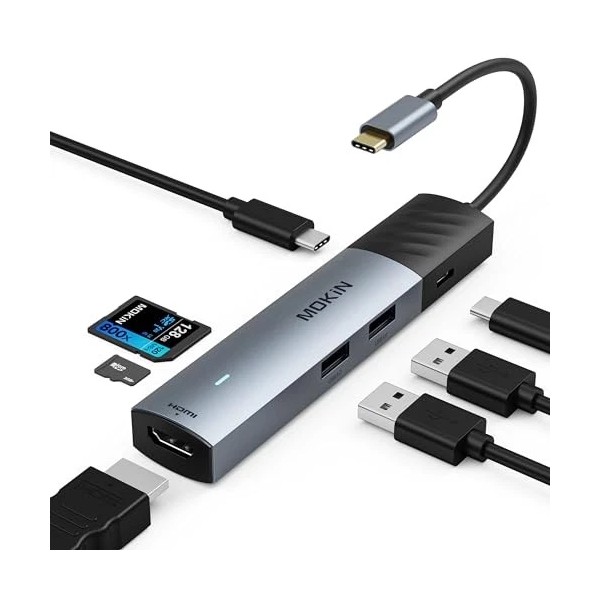 MOKiN USB C Hub-7 in 1 Multiport Adapter, 4K@60Hz HDMI,SD/MicroS