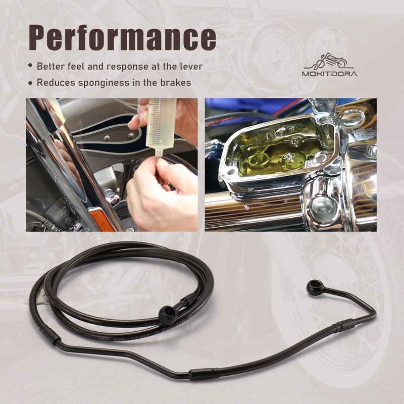- Durable - In contrast to originally installed rubber hoses, MoKitDora braided lines remain reliably heat-resistant and do not become porous, the time-consuming interval between brake fluid changes
