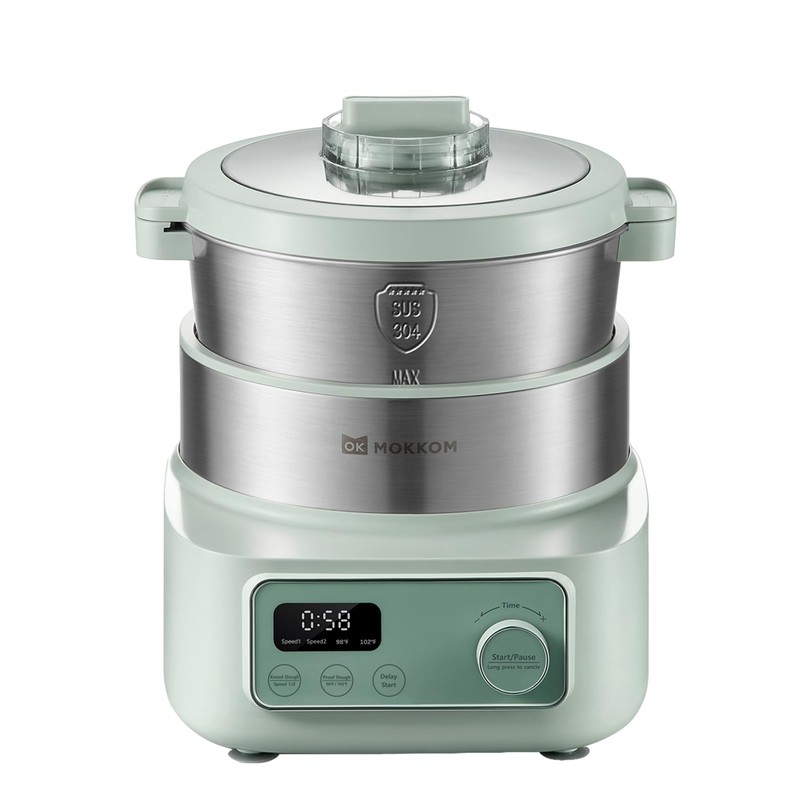 MOKKOM Electric Dough Maker with Proof Dough Function, Microcomputer Timing, 6.34Qt 304 Stainless Steel Bowl, Household Dough Maker Kitchen Flour Kneading Machine, Green