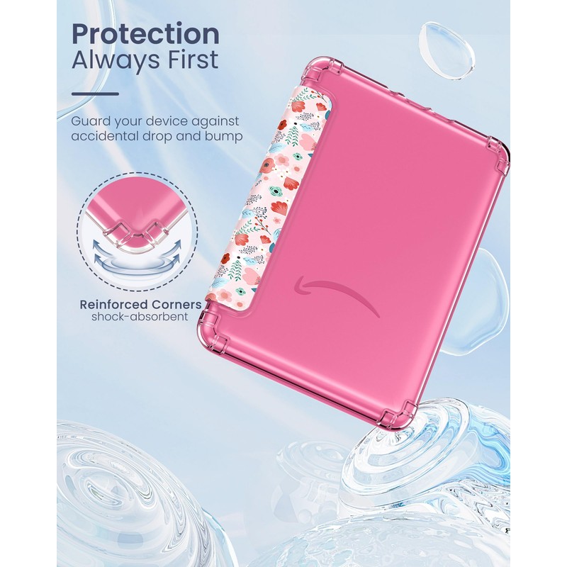 MoKo Case for All-new 7"Kindle Paperwhite 12th Generation 2024&Kindle Colorsoft Signature Edition 2024,Ultra Clear Soft Flexible Transparent TPU Back Cover Light Shell with Auto Wake/Sleep,Spring Pink