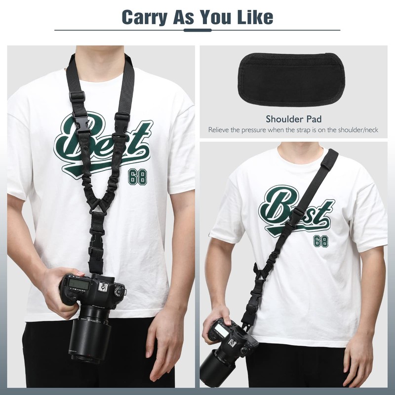 - Comfort and convenience - The non-slip shoulder pad distributes the weight perfectly. It adapts perfectly to the shoulders, effectively reduces fatigue and makes wearing more comfortable. The universal camera straps fit most camera brands and also other equipment, such as binoculars, monoculars, etc.