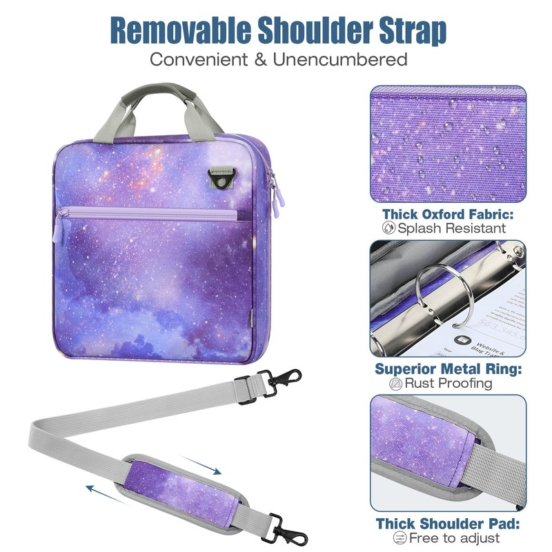 - TWO WAYS TO CARRY - The 3 ring binder with zipper comes with removable shoulder strap with thickened cushioning padding and durable handles for versatile and comfortable carrying. Reduce the pressure on the shoulders, making it easy for kids to go to school. (Adjustable Strap length: 75-140cm)