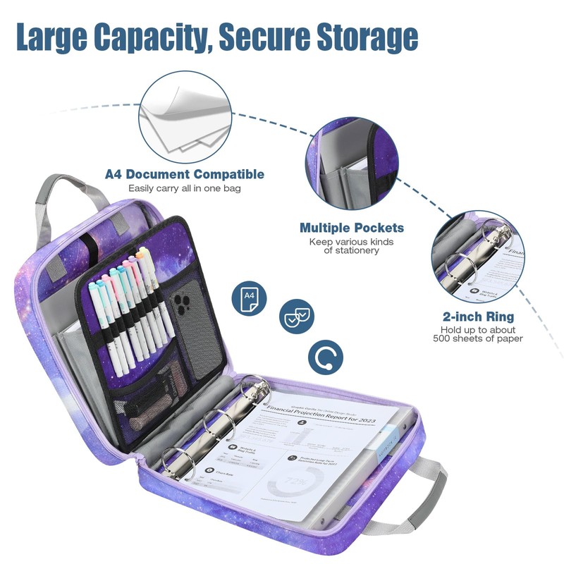 - 3 RING ZIPPER BINDER - Are you still carrying your school supplies with your hands full of bags? Tired of losing your school supplies all the time? Check out this MoKo versatile zip up binder, designed with stable 2 inch O-ring zip-up metal binder that can hold 500 A4-size sheets and you can add or reduce the amount of paper as you wish. The interior multi-compartment design allows you to store other school essentials such as pens, calculators, highlighters, rulers, etc.