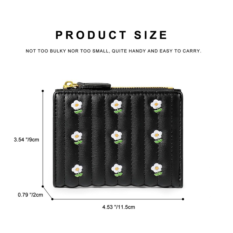 - Trend Design: This bifold wallet women features a delicate embroidered floral pattern, neatly stitched seams and a sturdy snap closure. The flower styling design is both fresh and sweet, making it the perfect accessory for girls and women