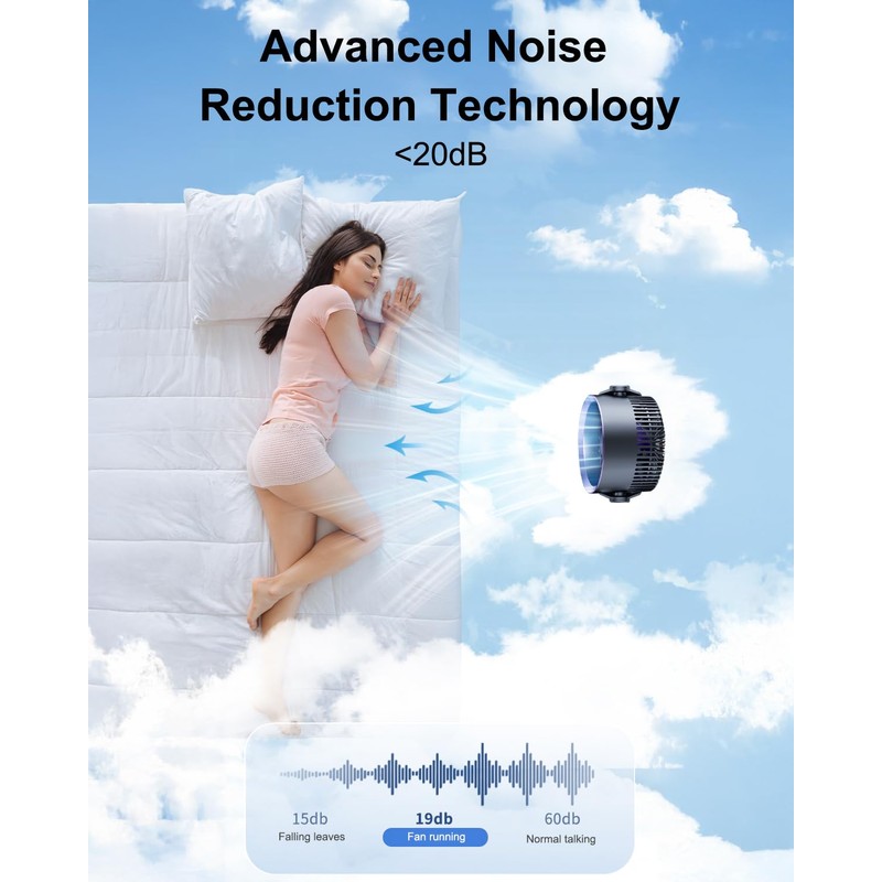 - 【Ultra Quiet Personal Fan】-This table fan equipped with advanced noise-reduction technology, make sure that the noise of this table fans for bedroom is lower than traditional fan, which is considered whisper-quiet. What's more, its carefully engineered airflow design ensures that even with prolonged use, you won't experience discomfort or headaches. Whether you're napping, making up, or working, it brings gentle relief, being your caring cooling ally all day long